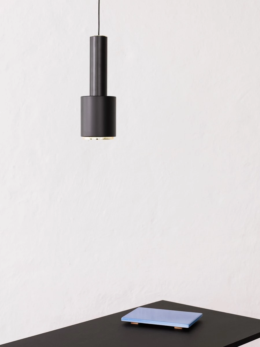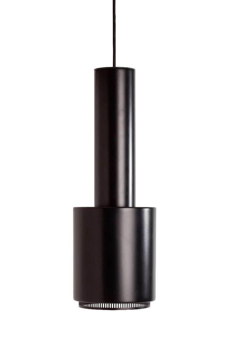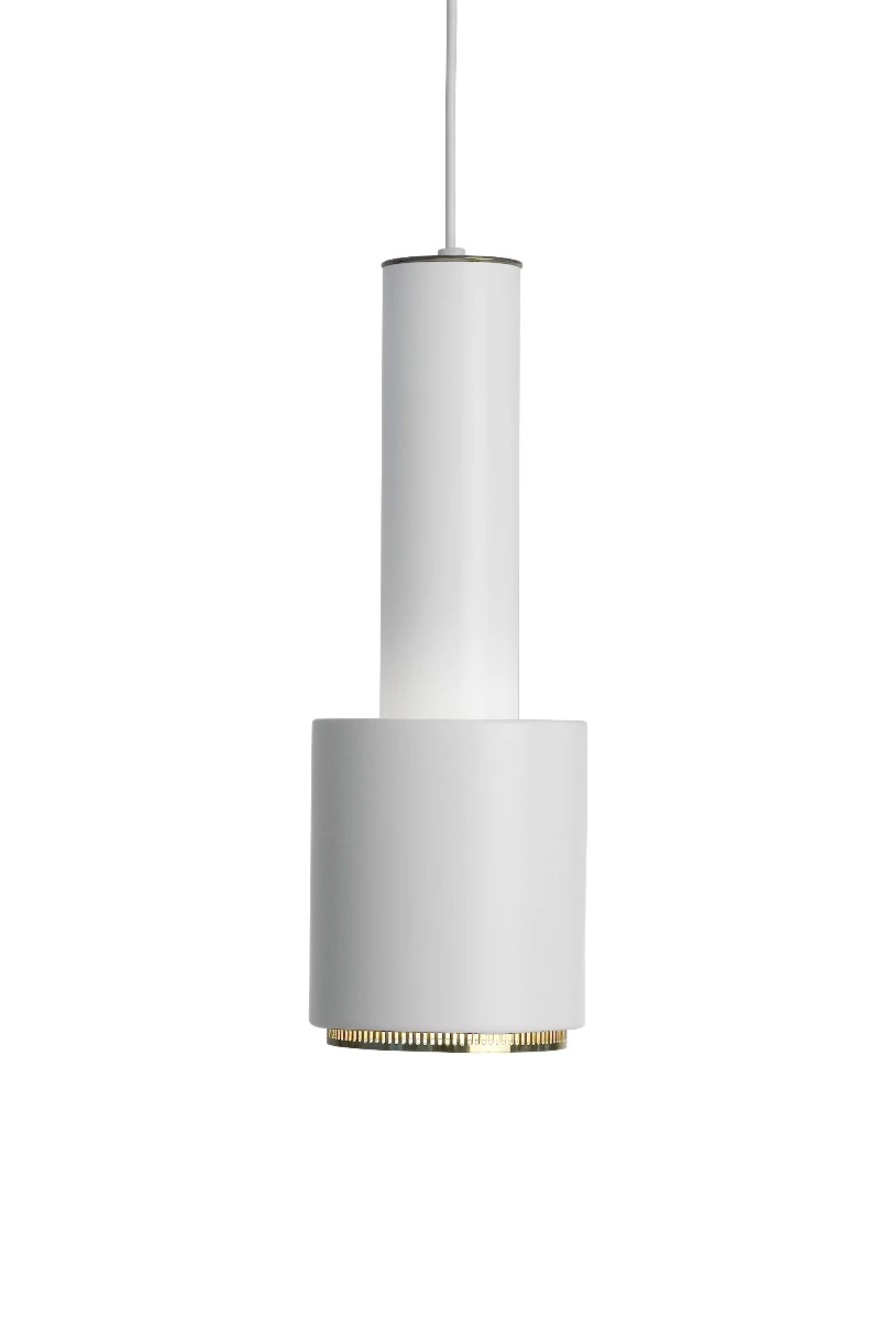 Designed by Alvar Aalto Manufactured by Artek Pendant light “Hand Grenade” original design year 1952The Hand Grenade lamp was designed for the building of the Finnish Engineers’ Association (Alvar Aalto 1948–1953). The same model was used in the Council Chamber of Säynätsalo Town Hall (Alvar Aalto 1949–1952).Two cylindrical shapes combine to make the A110 Hand Grenade Pendant Light. Simplicity at its finest, the light is complete with a brass diffuser that projects the light in a down-facing and warm way.