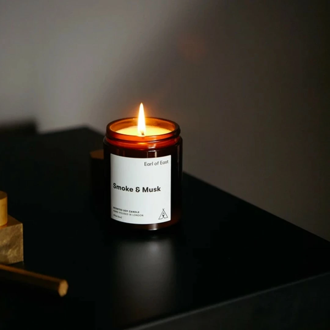 Designed by Earl of EastManufactured by Earl of EastHand-poured in East London the Smoke & Musk candle is inspired by the great outdoors. A unique blend green balsam fir sits alongside wood smoke and musky patchouli to create a sense of being in a cabin in the woods.
