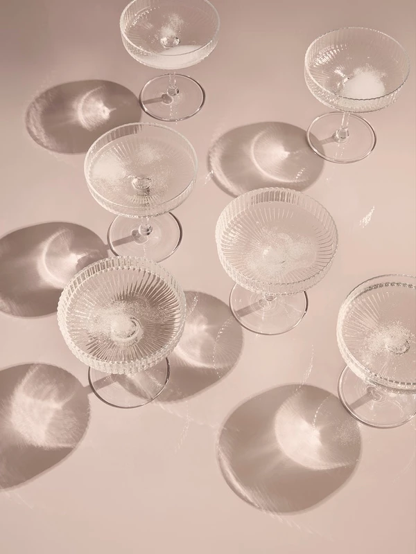Designed by Ferm LivingManufactured by Ferm LivingFeaturing a beautifully rippled surface the Ferm Living Ripple Champagne Saucer present a classic glass for sparkling wines. They are made of delicate glass mouth-blown into the mould, adding a dynamic and energetic expression to the glasses.Each one of these glasses is mouth-blown and made with love, why variations may occur.
