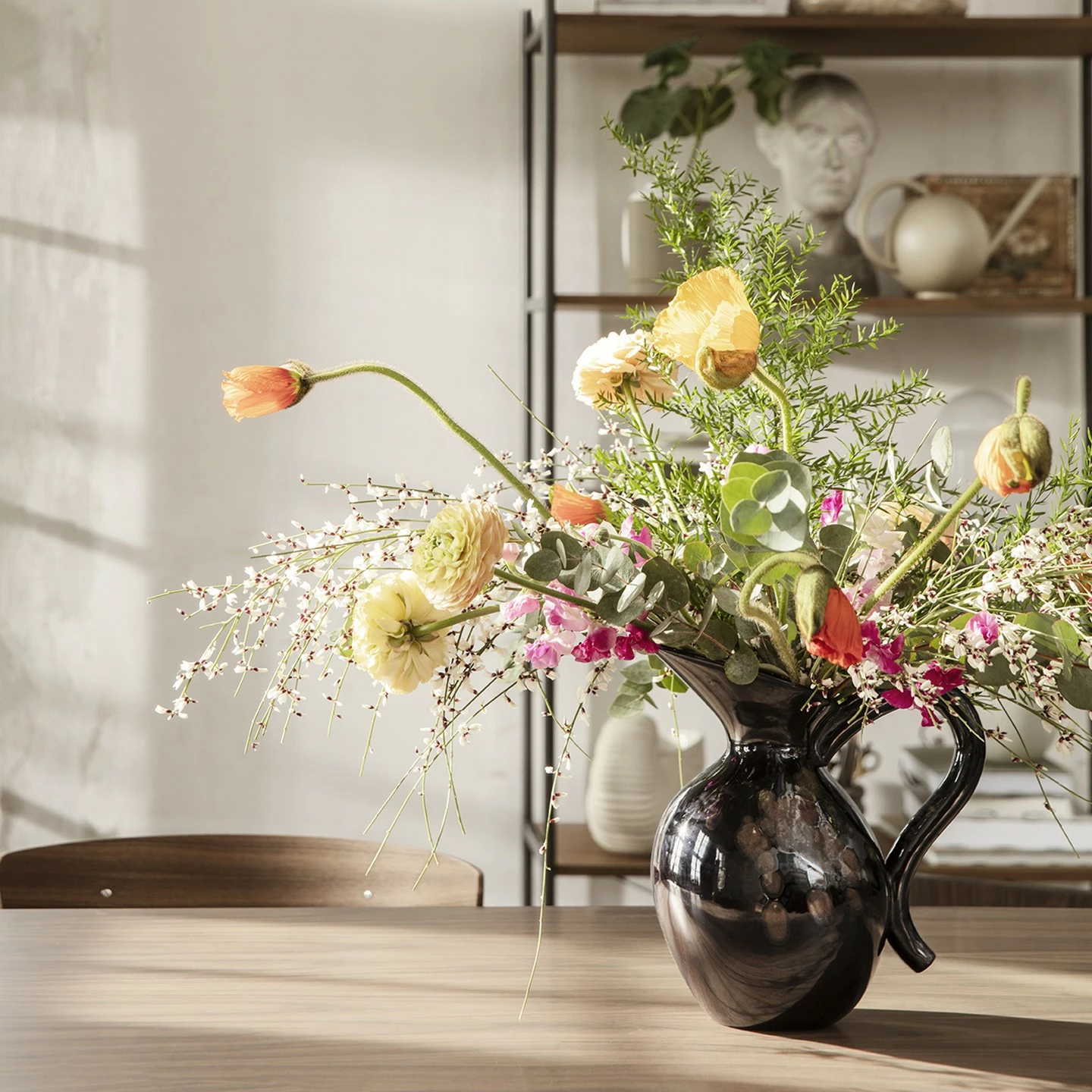 Designed by Ferm LivingManufactured by Ferm LivingRecalling the classic shapes from traditional pottery, the Verso Jug has a delicate, feminine form that features an artfully oversized handle. The jug is made from stoneware with a reactive, high-gloss glaze that has been applied by hand, making each individual piece unique.