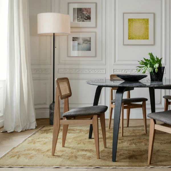 Designed by Space CopenhagenManufactured by GubiDesigned by Space Copenhagen for Gubi, the Gravity range is a contrasting play of strength and fragility.Taking its name from the lamp’s characteristic balancing act between the anchoring of the heavy, cylindrical base and the lightweight, airy shade, the Gravity lamp exquisitely merges into a sculptural whole. Blending understated elegance, clean functionality and effortlessness, the lamp is ideal for a range of settings, from intimate bedroom placements to eye catching focal points in living areas.