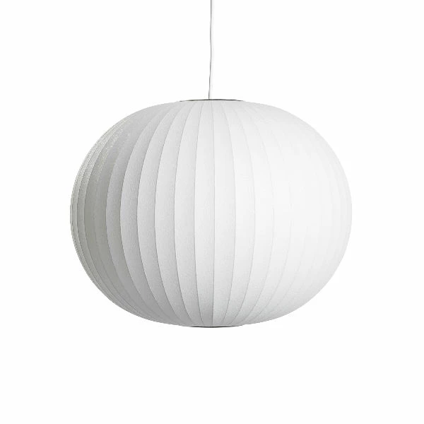 Designed by George NelsonManufactured by HayThe Nelson Ball Bubble Pendant is a full, perfectly round sphere that fills any interior with a warm, diffused light. A steel ceiling plate allows it to delicately float overhead. George Nelson was inspired by a set of silk-covered Swedish hanging lamps when he originally designed the Bubble Lamp series in 1952.