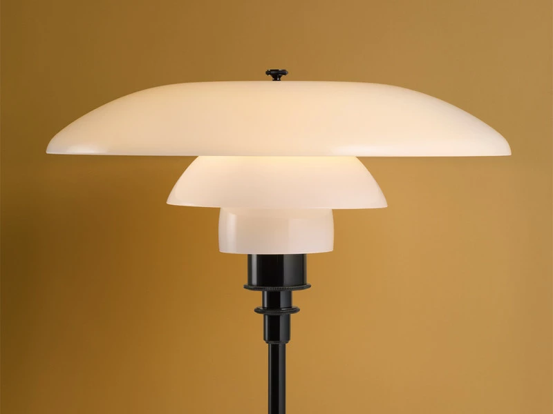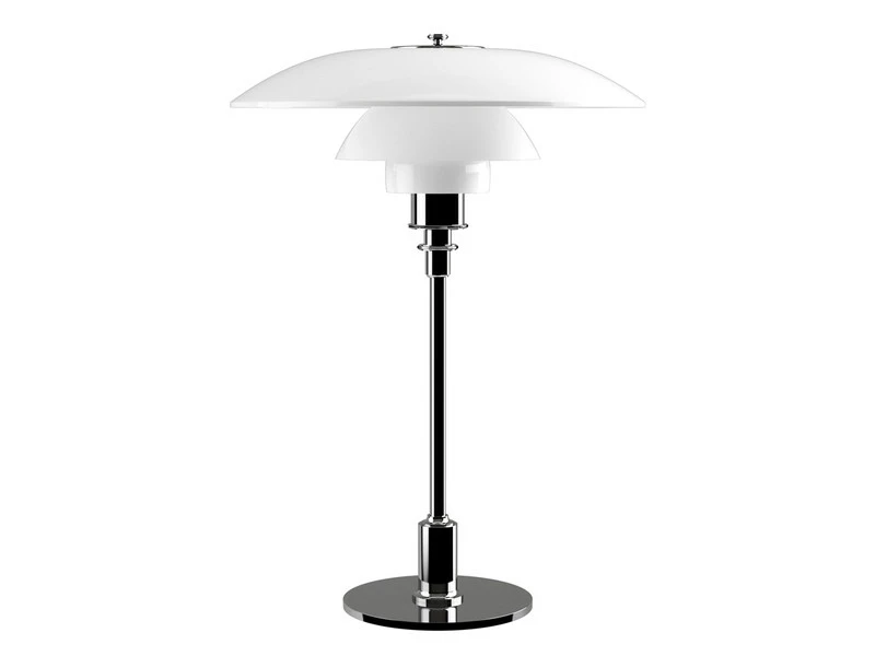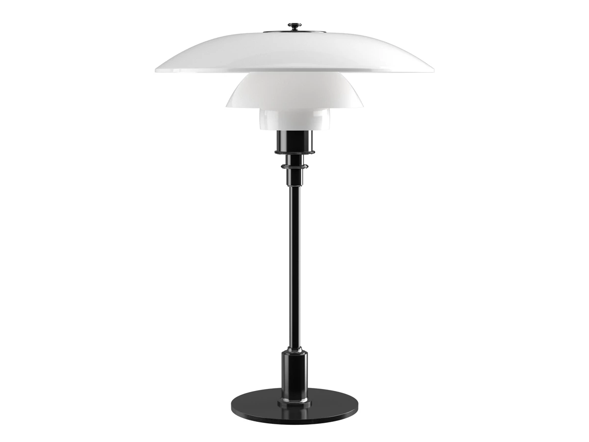 Designed by Poul HenningsenManufactured by Louis PoulsenThe Louis Poulsen PH 3½‑2½ Glass Table Lamp was originally designed in 1928 and is one of many lamps developed by Poul Henningsen as part of his world‑famous three‑shade system.Poul Henningsen based his three-shade design on a logarithmic spiral to make optimum use of light. The form of the shades was determined by the way they were required to shape and reflect the light, and the lamp was designed to be glare-free.