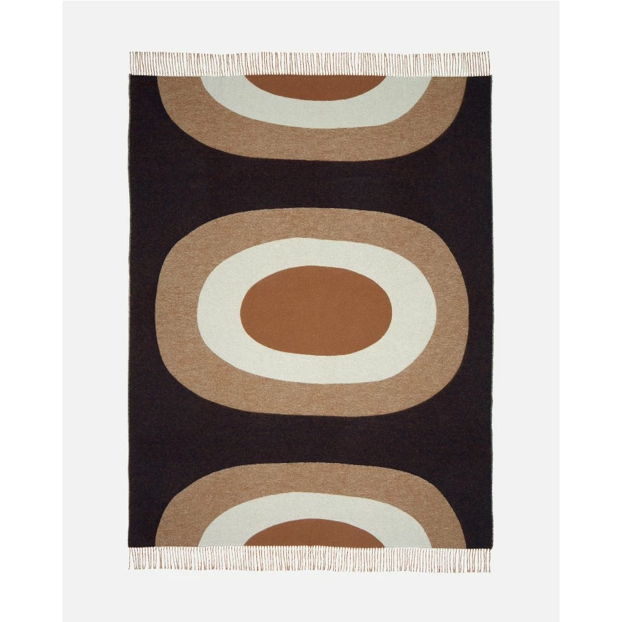 Designed by Maija IsolaManufactured by MarimekkoThis Melooni pattern throw is made of a cotton and wool blend. The warm blanket has fringes on the ends. A large, laid-back pattern of stylized natural forms, Melooni (melon) is one of the many designs in Maija Isola’s output of the 1960s that superbly captured the spirit of the times.