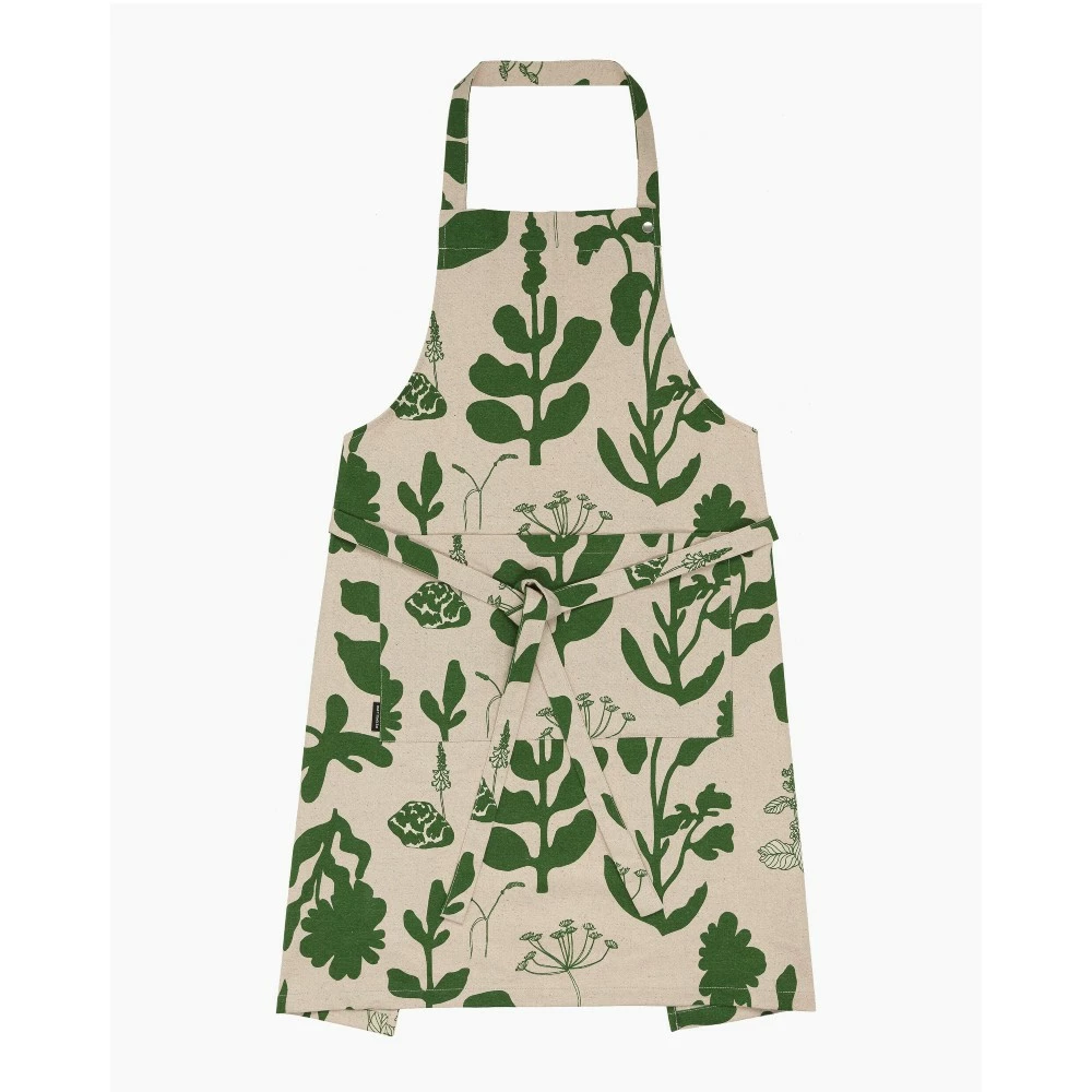 Designed by Maija LouekariManufactured by MarimekkoMaija Louekari drew inspiration for the 2020 Elokuun varjot (August shadows) print from her own wildish home garden. The designer is fascinated by the changing seasons of the North – the new beginnings and the abundant growth that follows, year after year. This pattern design is an ode to greenery, freedom and warm winds.Made of cotton and linen this apron has one front pocket, an adjustable neck strap and bands at the waist that can be tied together at the back.