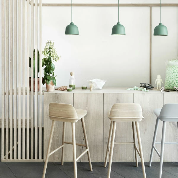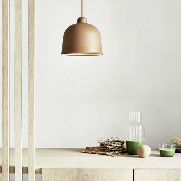 Designed by Jens FagerManufactured by MuutoThe GRAIN lamp brings a new perspective to the pendant lamp by combining a classic minimalistic design with the use of innovative new materials. Small grains of fibre in the lamp’s material bring subtle changes in colour and shade. The lamp is equipped with a high quality LED light bulb that lasts for up to 10,000 hours. LED light bulbs reflect a natural light with a warm glow.